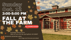 All church event for families. We will have a bonfire with hot dogs, s’mores, and water. There are some activities that will cost some money.